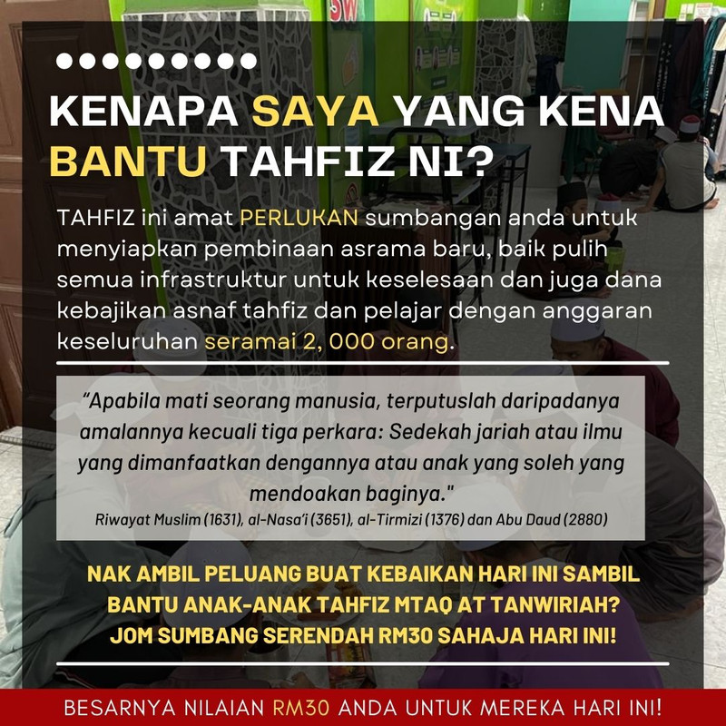 3. Sebahagian daripada kutipan sumbangan akan digunakan untuk tujuan kos operasi pengurusan.